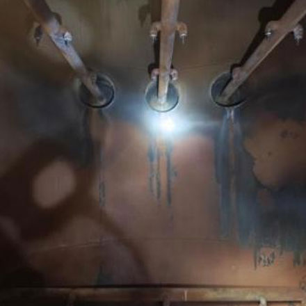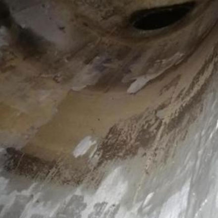 工况介绍:烟气温度60℃~180℃左右,基体材料普通钢板。长期作为脱酸后烟道使用,烟气~180℃;同时作为应急湿法脱酸塔备用,工况~60℃。塔底备有碱液,应急时喷淋碱液脱酸,气体、液体交变工况,腐蚀严重。