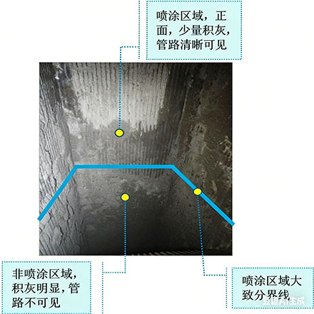 防腐蚀功能:完好涂层实现隔断高温腐蚀性烟气和积灰结焦层接触余热锅炉水冷壁钢管表面,阻止了对水冷壁腐蚀,延长了水冷壁使用寿命,减少水冷壁爆管可能性。防结焦功能:涂层具有低的表面能,防积灰结焦的能力强,涂层表面基本不结焦,仅有少量积灰被烟气冲刷会掉落,且易清理。